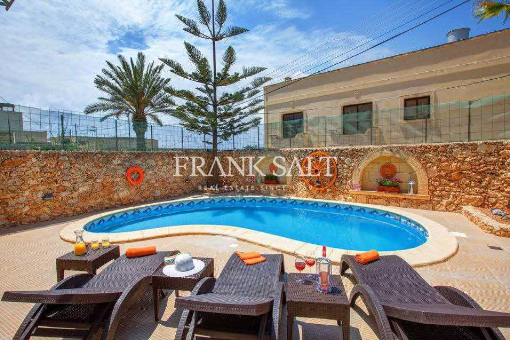 [longDescription] => Nicely furnished FARMHOUSE situated in the sought after village of Xaghra. Consists of a combined fully equipped kitchen and dining area, main bathroom, 3 bedrooms ( 3 with en-suites) and a large living area with TV leading to the sunny pool & BBQ area. The bedrooms are fully air-conditioned. Ideal for a family for long let.