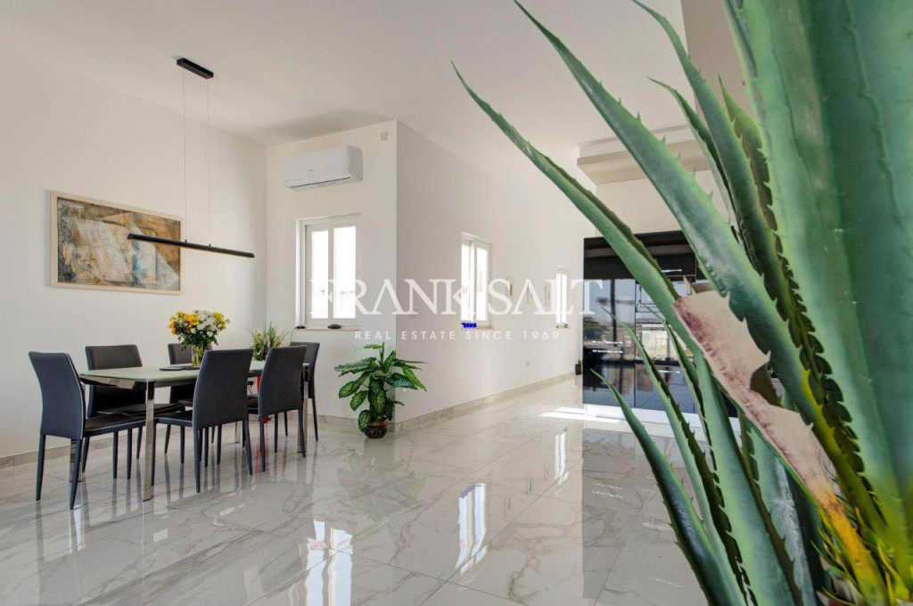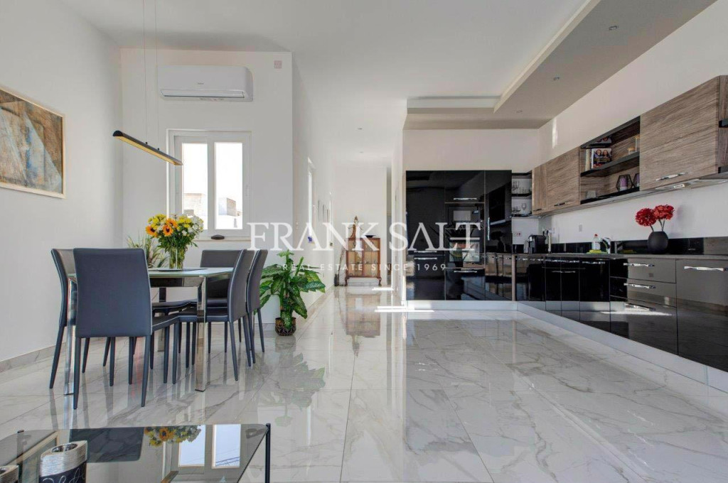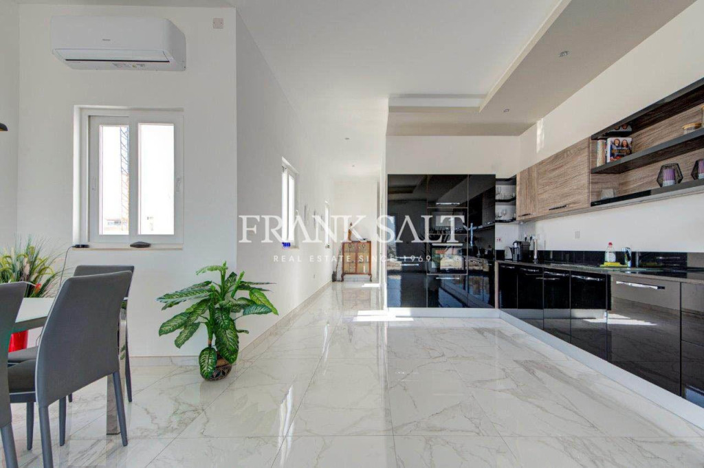 A unique opportunity to purchase a luxury 2 bedroom PENTHOUSE served with lift in Ta Giorni area of St Julian’s. Spacious kitchen, dining and living area with rooms enjoying extensive views overlooking Valletta and distant sea views from both front and back terraces, ideal for entertaining. One double bedroom with en-suite facilities, and one guest bedroom. Luxuriously finished throughout with AC in every room. Further amenities include: Main bathroom, en-suite bathroom both with floor heating, smart lighting in the kitchen to change the ambience, dining and living area, and a lock up 2 car-garage is included in the price. The penthouse is 5 minutes walking distance to shopping facilities and seafront, schools and restaurants. Freehold