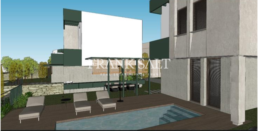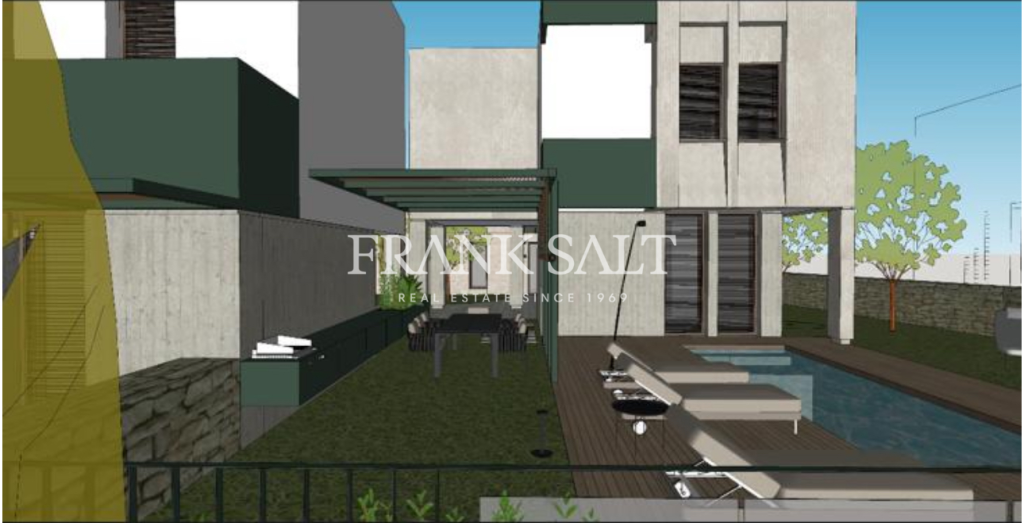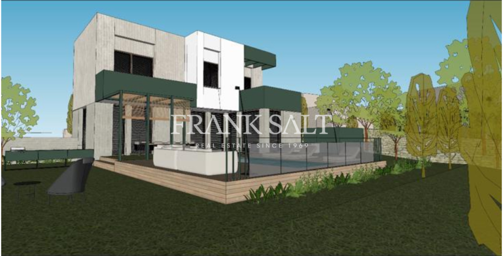 [longDescription] => Plot of land measuring approximately 1300 sqm being sold with permits in hand to build a detached villa. The proposed villa will comprise an open-plan kitchen, living, and dining area that opens onto a pool deck and garden, three bedrooms with the master bedroom featuring an ensuite, a guest shower room, a guest toilet, and a full basement with parking and storage. The property is being sold freehold.